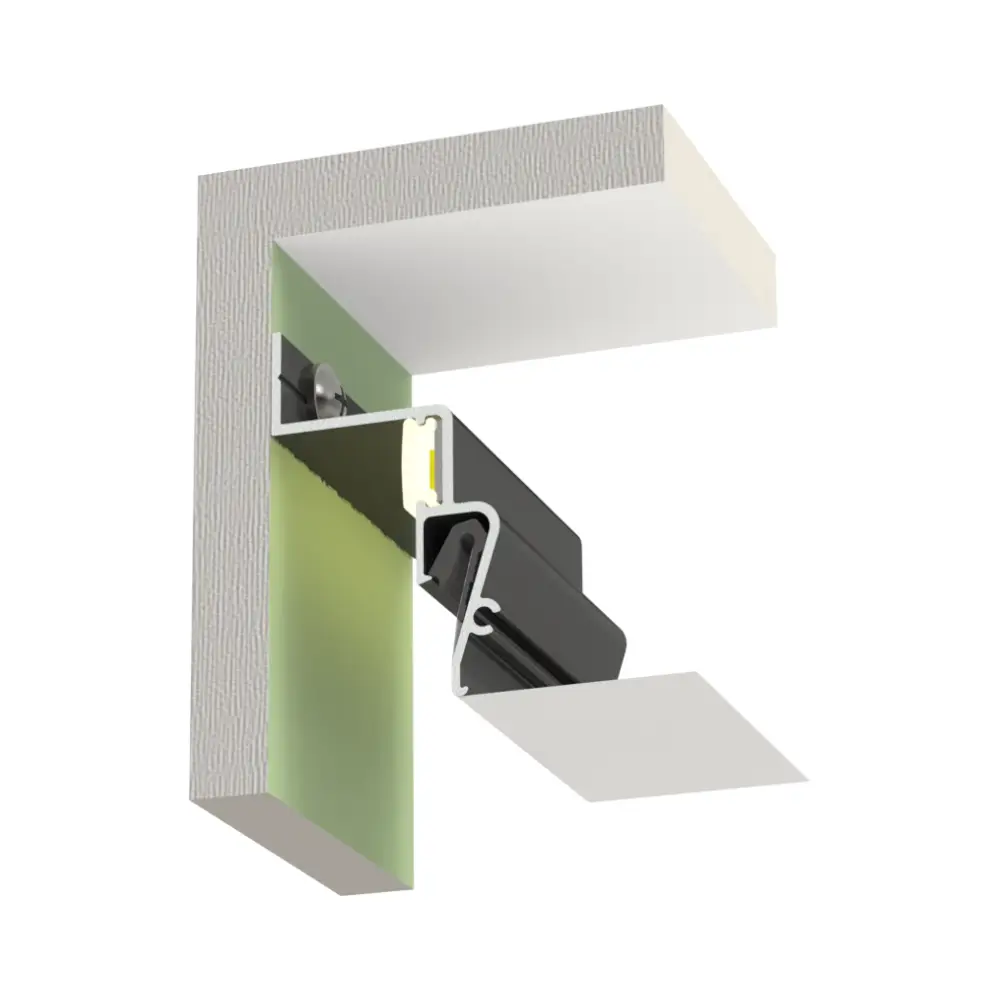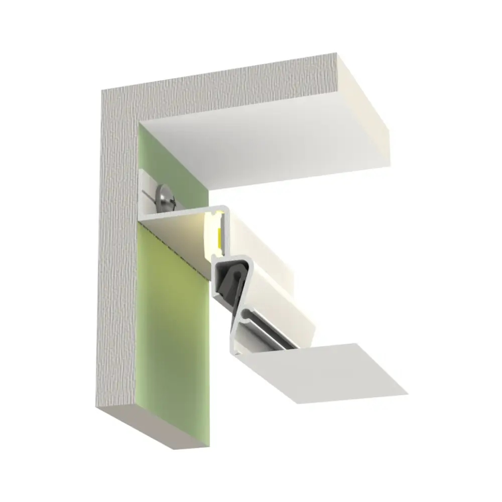 Profil für Montage der Spanndecken mit „Schatten-Anschluss“ и LED-Beleuchtung mit/ohne elastischen Lichtdiffusor. Mit Effekt von schwebender Spanndecke.