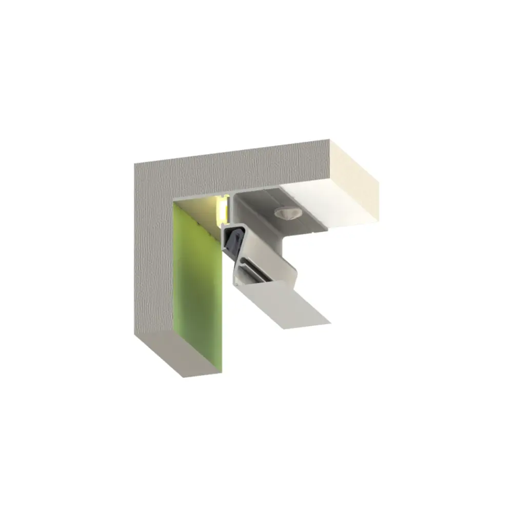 Profile for the installation of stretch ceilings with a shaded gap to that wall and LED lighting, elastic diffuser optional. Floating ceiling effect.
