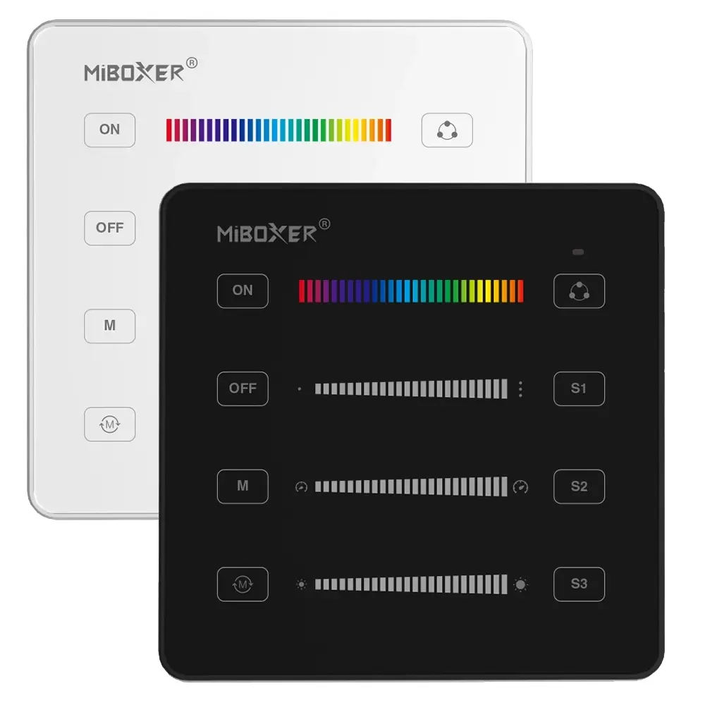 Equipped with advanced 2.4G RF wireless technology, the panel ensures a stable connection within a range of up to 30 meters, guaranteeing reliable control even under high radio frequency loads. Its ergonomic design and conveniently arranged control elements make lighting adjustments quick and simple.